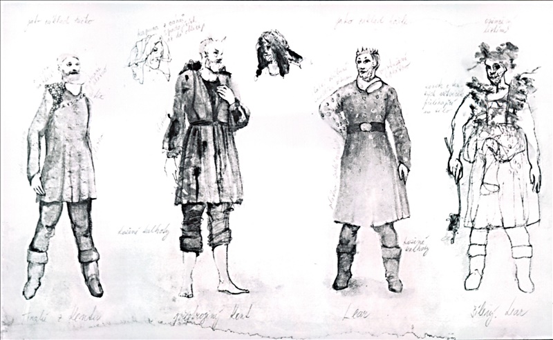 Lear, král britský:František Štěpán; Francouzský král:Martin Dráb (alternation); Petr Hoffman (alternation); Burgundský vévoda:Petr Klimeš; Cornwal, vévoda Cornwalský:Robert Tyleček; Albany, vévoda Albanský:Marek Kunc; Vévoda z Kentu:František Nedbal; Vévoda z Glosteru:Emanuel Křenek; Edgar, jeho syn:Petr Houska; Edmund, Glosterův nemanžel.syn:Martin Dráb; Oswald, sluha u Goneril:Jindřich Suchopár; Šašek:Martin Valouch; Goneril:Kamila Večerková; Reagan:Karla Pyšková; Kordelie:Michaela Bednářová; Rytíř z Learovy družiny:Drahomír Ožana; Sloužící I.:Martin Dráb (alternation); Petr Hoffman (alternation); Sloužící II. a Stráž:Miroslav Neborowski; Sloužící III.:Jaroslav Belhovský; Posel a Setník:Petr Klimeš; Sloužící a vojáci:Martin Dráb; Petr Klimeš; Drahomír Ožana; Jaroslav Belhovský; Miroslav Neborowski; Robert Tyleček