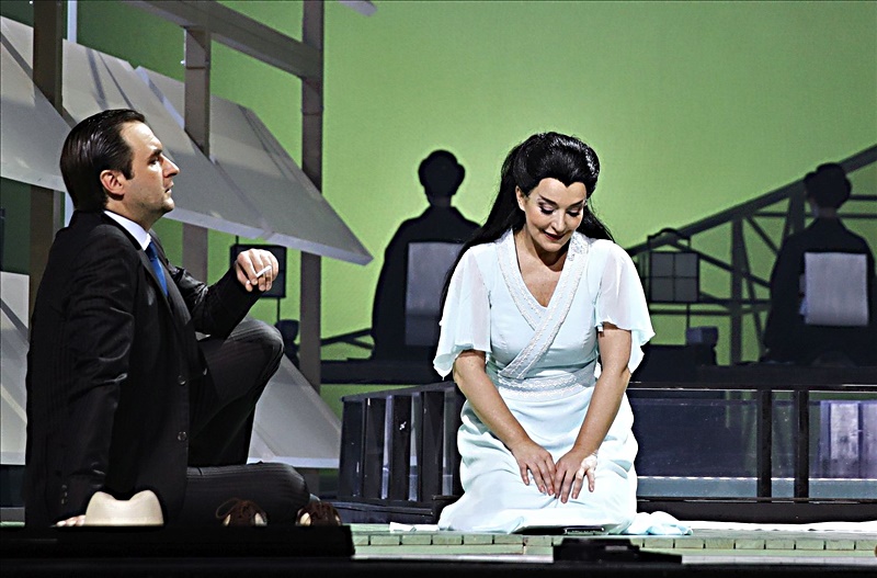 Cio-Cio-San:Christina Vasileva; Suzuki:Štěpánka Pučálková; F. B. Pinkerton:Peter Berger; Sharpless:Pavol Remenár; Yamadori:Igor Loškár; Goro:Václav Sibera; Kate Pinkerton:Lenka Pavlovič; Strýc Bonzo:Miloš Horák; Yakuside:Tomáš Foltýnek; Císařský komisař:Roman Vocel; Knihovník:Libor Novák; Teta:Eliška Sedláčková; Matka Cio-Cio-San:Markéta Panská; Sestřenka:Tereza Růžičková