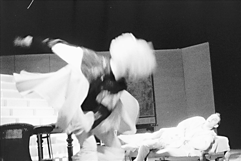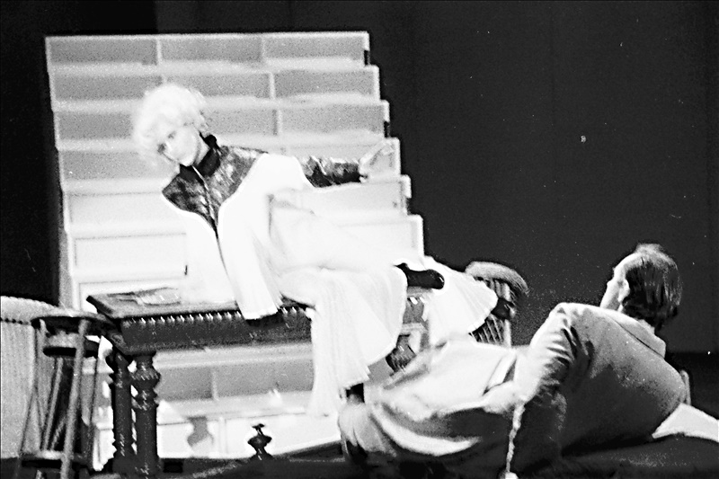 odehrává se na jevišti Realistického divadla v devadesátých letech dvacátého století Drahomíra Hermanová: paruky a masky