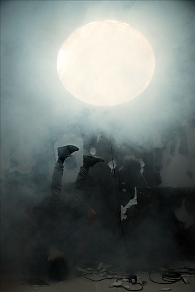 Performance kombinuje elementy visual artu, objektového divadla a dark ambientu.