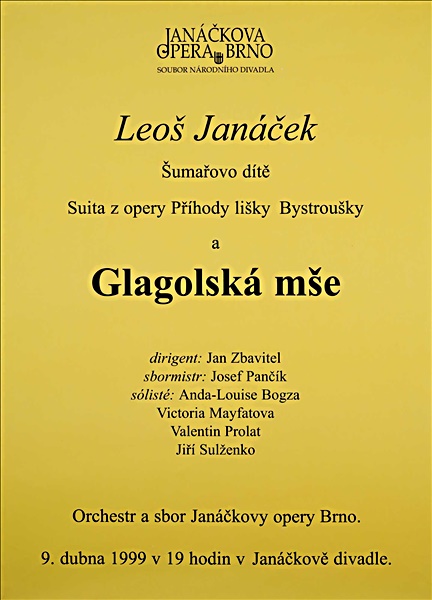 Conductor:Jan Zbavitel; Chorus Master:Josef Pančík