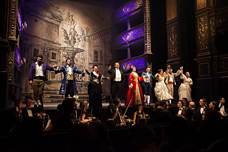 Árie z Mozartových oper – Dona Giovanniho, Figarovy svatby, Cosi fan tutte, Kouzelné flétny a Únosu ze serailu – v legendární scénografii Dona Giovanniho od Josefa Svobody a kostýmech od Theodora Pištěka.