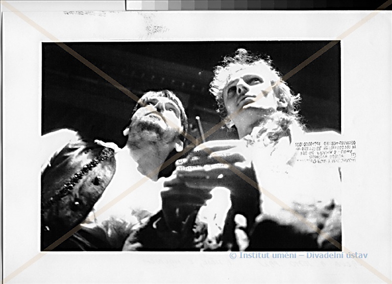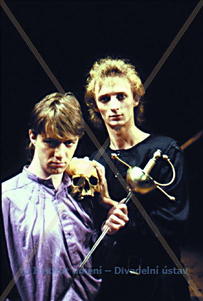 Král:Aleš Procházka (alternation); Viktor Vrabec (alternation); Královna:Kateřina Macháčková (alternation); Marie Málková (alternation); Hamlet:Kamil Halbich; Corambis:Miloš Kopečný (alternation); Viktor Vrabec (alternation); Leartes:Jiří Langmajer (j.h.); Ofélie:Simona Vrbická; Horacio:Ivan Jiřík; Duch:Jan Skopeček (j.h.); Rosencrast:Miroslav Táborský (j.h.); Gilderstone:Stanislav Lehký; Fortenbras:Otto Rošetzký (j.h.); Marcellus:Čestmír Gebouský; 1.strážný:Miroslav Táborský (j.h.); 2.strážný:Stanislav Lehký; Voltemar:Jiří Havel; Mantano:Miroslav Nohýnek; 1.herec:Jan Skopeček (j.h.); 2.herec:Čestmír Gebouský; 3.herec:Otto Rošetzký (j.h.); 4.herec:Jiří Havel; Šašek:Jan Skopeček (j.h.); 2.šašek:Stanislav Lehký; Kněz:Miroslav Táborský (j.h.); Chlubivý šlechtic:Miroslav Nohýnek